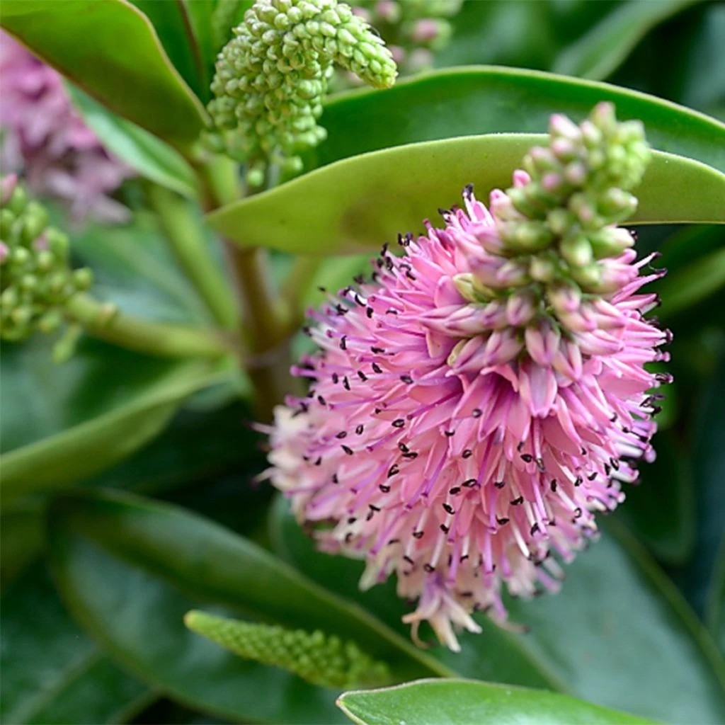 Les Hebe de la sĂ©rie  « Wiri » ont Ă©tĂ© sĂ©lectionnĂ©es au sein du Auckland Regional Botanic Gardens pour leur bonne rĂ©sistance aux maladies du feuillage, sĂ©vissant souvent en climat humide et leur assez bonne rĂ©sistance au froid de lâordre de -10°C. Mais en climat frais, optez pour une valeur sĂ»re comme la grande Hebe Midsummer Beauty, qui forme un bel arbuste jusquâĂ 1,20 m, livrant des fleurs bleu-lavande durant tout lâĂ©tĂ© et qui mĂ©rite une place dans la plupart des jardins. Raspberry Ripple est une nouvelle variĂ©tĂ© irlandaise tout aussi robuste et adaptĂ©e Ă la culture en pot en raison de sa forme compacte de 50 cm et sa tolĂ©rance Ă -12°C. Son feuillage vert foncĂ© pourprĂ© disparaĂźt tout lâĂ©tĂ© sous une profusion dâĂ©pis de 5 cm, rose framboise lavĂ© de blanc.